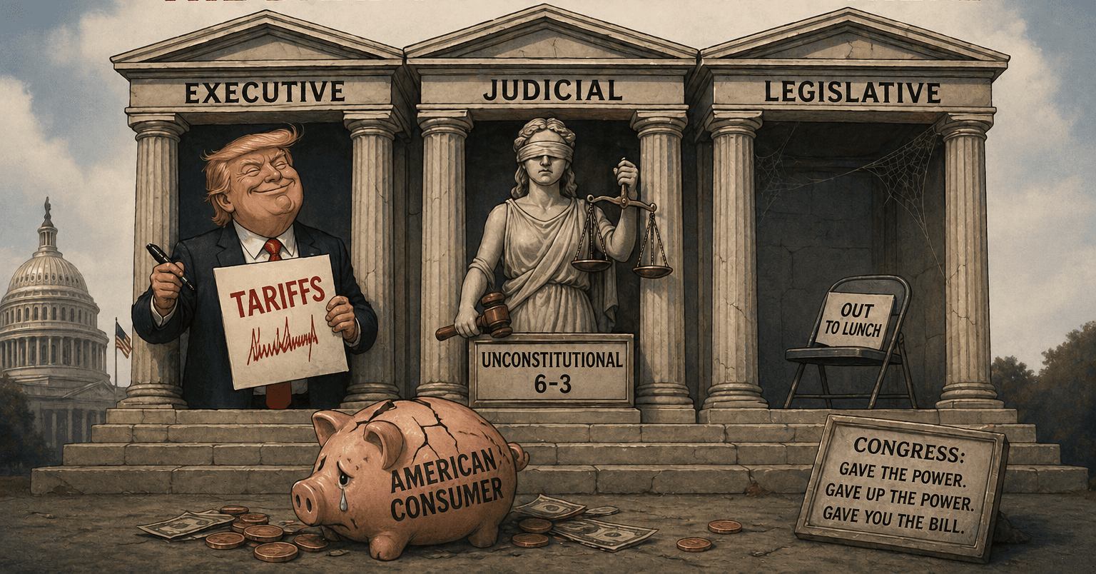 I don't know how to fix Congress. Nobody does. But I know that pretending the tariff story is about one man in a suit signing executive orders is the comfortable lie, and the comfortable lie is exactly what got us here.