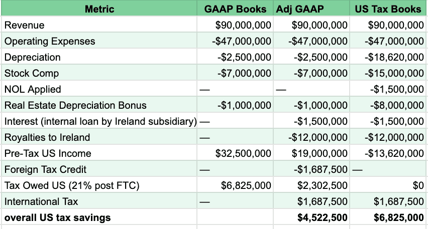 After all the deductions, credits, and strategic international shenanigans, Loopholia didn’t just reduce their U.S. tax bill — they reported a U.S. loss of $13.2 million on their tax books.