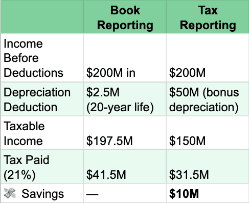 But for tax purposes, they take a $50M deduction in Year 1 (assuming 100% bonus depreciation is in place….you’ll understand in a second).