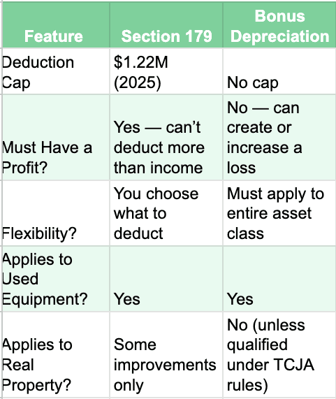 🔄 Section 179 vs. Bonus Depreciation: What’s the Difference?